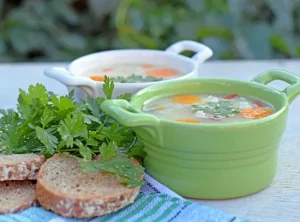 • Branqueie o coentro e a pimenta de cheiro sem semente e resfrie em água com bastante gelo.