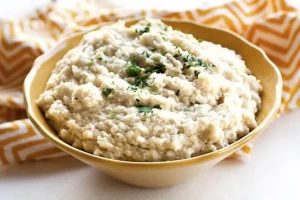 • Com a ajuda de um pilão, quebre todas as pimentas, com alho, cebola e tomilho. Misture todos os ingredientes e leve para uma panela em fogo baixo para secar mais um pouco a farofa. Reserve;