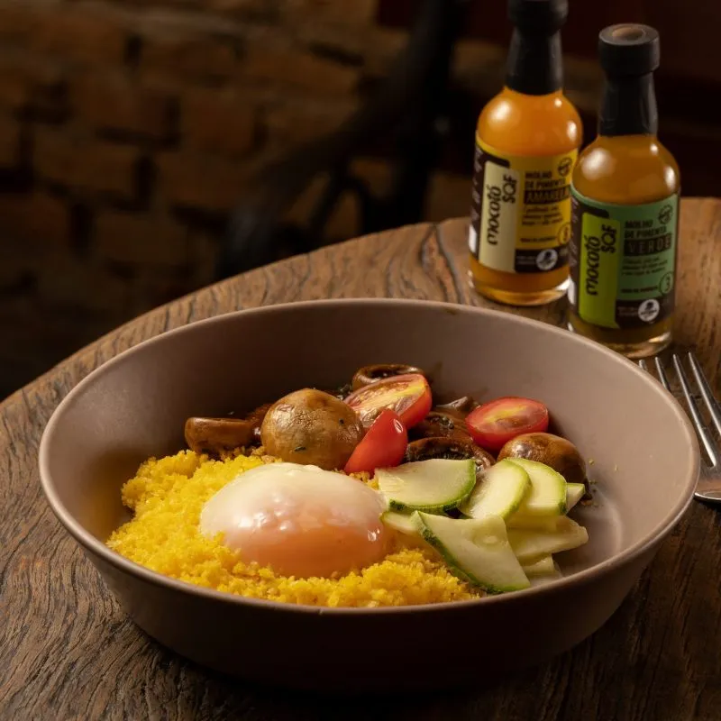 - Coloque o cuscuz sob os cogumelos, adicione a abobrinha e aproveite.